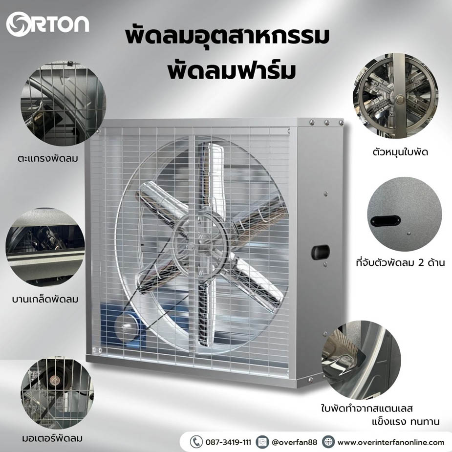 พัดลมแขวนผนัง ใช้ดูดระบายความร้อน กลิ่น ควัน ในอาคารให้ปริมาณลมมาก ทนทาน ประหยัดไฟ ประหยัดพื้นที่ติดตั้ง สำหรับใช้ในโรงงานอุตสาหกรรมทั่วไป ขนาด 20 นิ้ว จนถึงขนาดใหญ่ 36 นิ้ว ทนทานมาก พลังลมแรง เหมาะสำหรับงานเป่าระบายอากาศในโรงงานอุตสาหกรรม สำนักงาน ฟาร์มโรงเรือน อาคารโกดัง ราคาประหยัด มีให้เลือกหลากหลาย