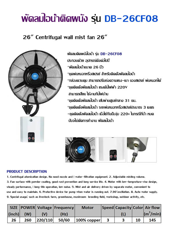 พัดลมติดผนัง ไอน้ํา รุ่น DB-26CF08